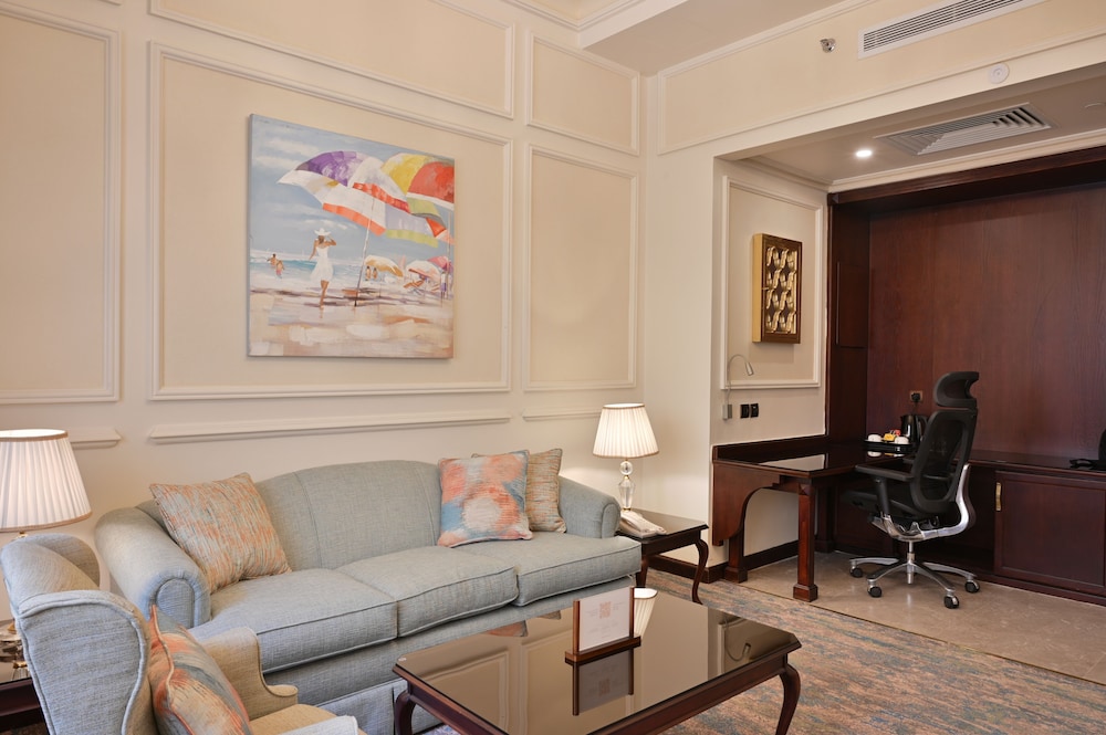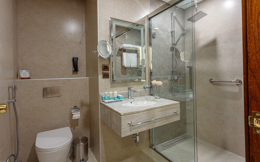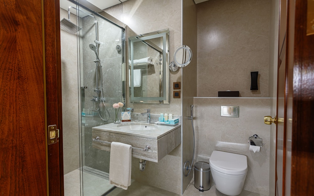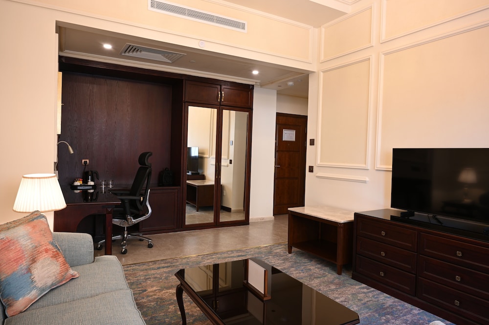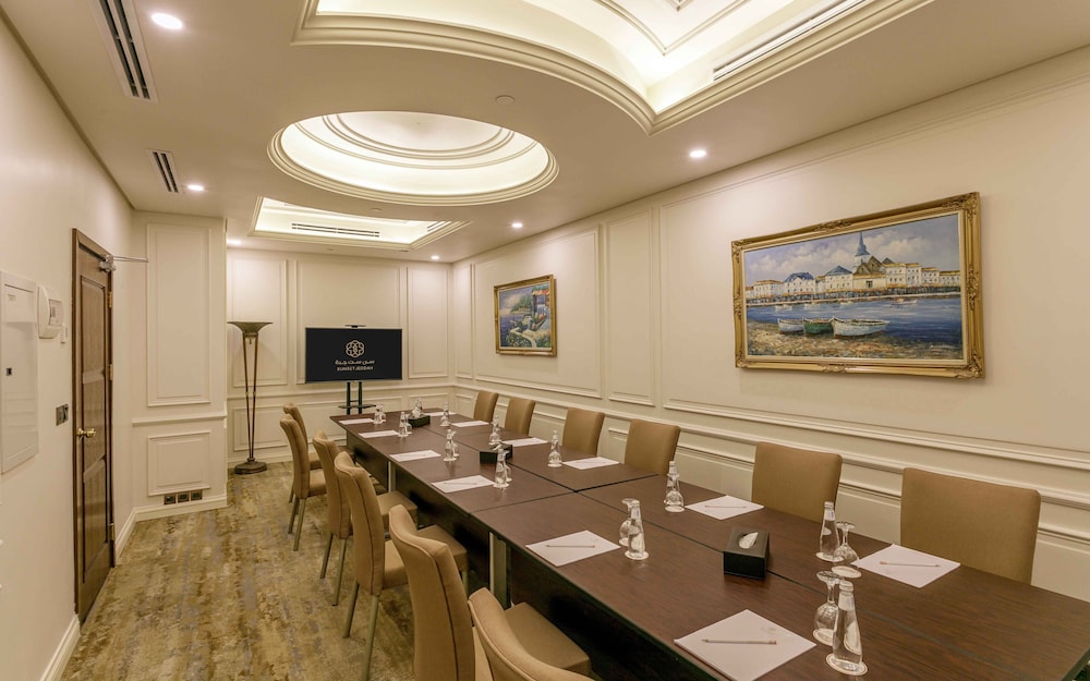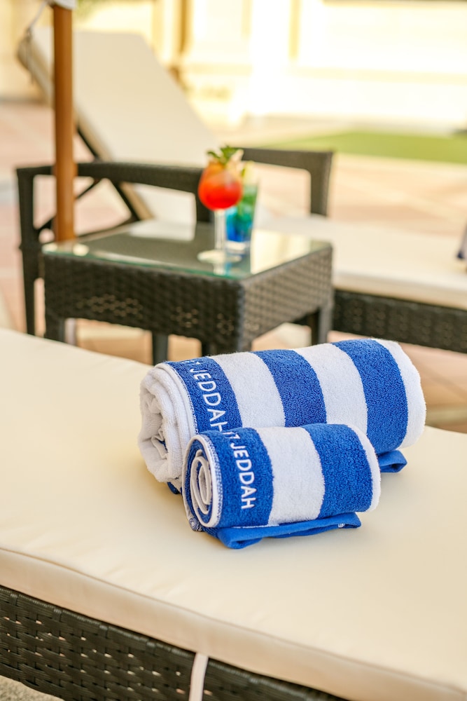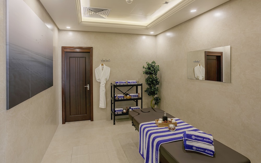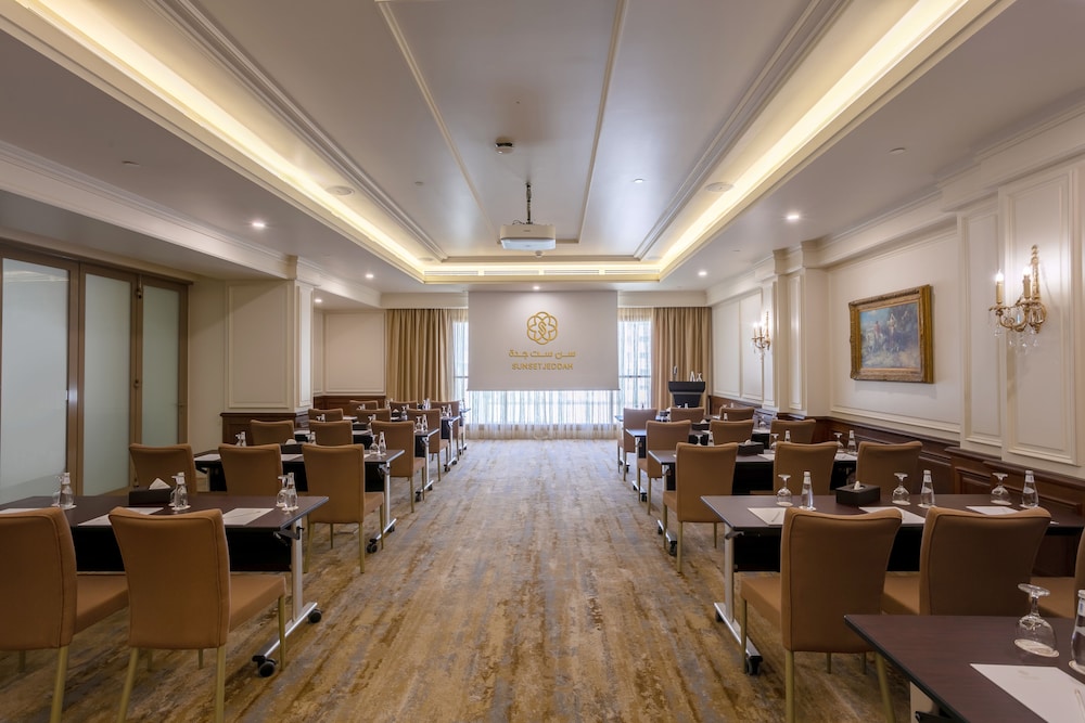 The SUNSET HOTEL is a Tourist hotel. The nightlife/restaurants are easily accessible by taxi or bus from the hotel. Enjoy a comfortable stay at Sunset Jeddah, centrally located in Jeddah. The hotel features an outdoor pool, a fitness center, and complimentary wireless internet access. Guests can dine at the restaurant or coffee shop/cafe. A buffet breakfast is available daily from 6:00 AM to 9:30 AM for a fee. The hotel offers concierge services, dry cleaning/laundry services, a 24-hour front desk, and luggage storage. For business travelers, there are 2 meeting rooms available. A roundtrip airport shuttle is available 24 hours for a surcharge, and free self-parking is provided onsite. The 164 air-conditioned rooms feature minibars, Smart TVs, complimentary wireless internet access, and digital programming. Bathrooms include showers with rainfall showerheads and complimentary toiletries. Rooms also offer safes and desks, and housekeeping is provided daily. Nearby attractions include Jeddah International Market and Thalia Street. The preferred airport is King Abdulaziz International Airport (JED), located 16.2 km away.Building