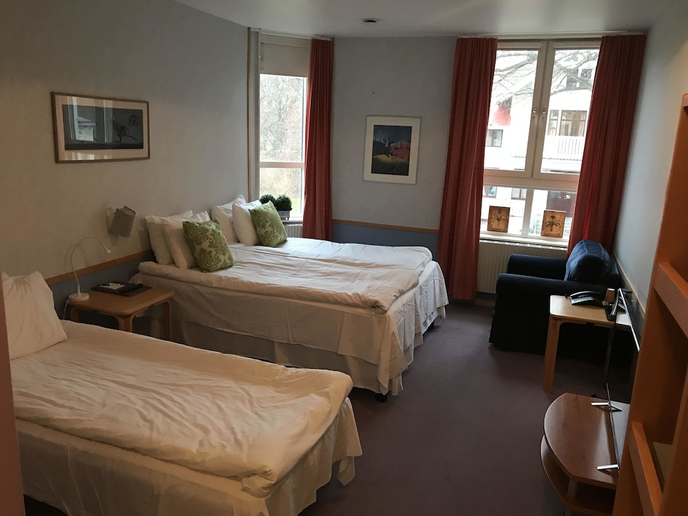 The Karstorp Hotel is a hotel. Karstorp Hotel, located in Skövde on a lake, offers 32 guestrooms with flat-screen TVs, free Wi-Fi, and cable programming. Private bathrooms include showers, complimentary toiletries, and hair dryers. Rooms also feature desks and coffee/tea makers. Housekeeping is provided once per stay. The hotel features a restaurant serving meals, a bar/lounge, a 24-hour health club, a terrace, a garden, a picnic area, and barbecue grills. Complimentary amenities include newspapers in the lobby, luggage storage, and self-parking. Buffet breakfast is available daily for a fee. Stellas Lekland and Arena Skovde are a short drive away. Skara Sommarland is approximately 15 miles (24.1 km) from the hotel. The preferred airport is Jonkoping (JKG-Axamo).Building