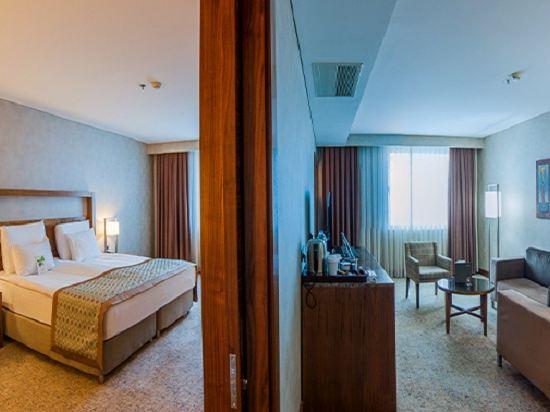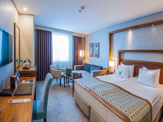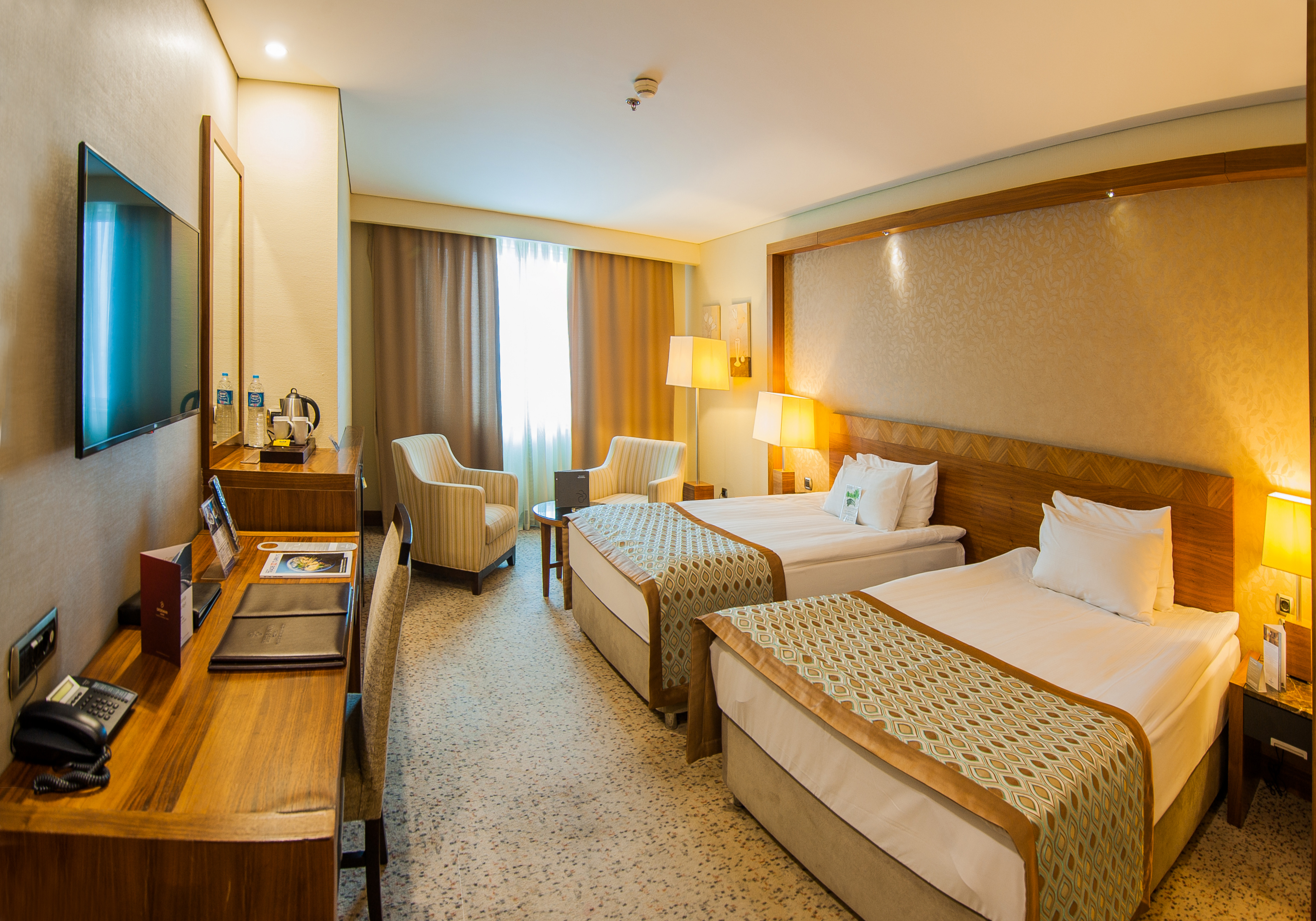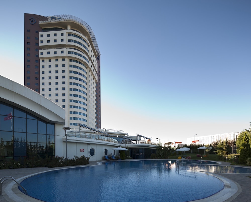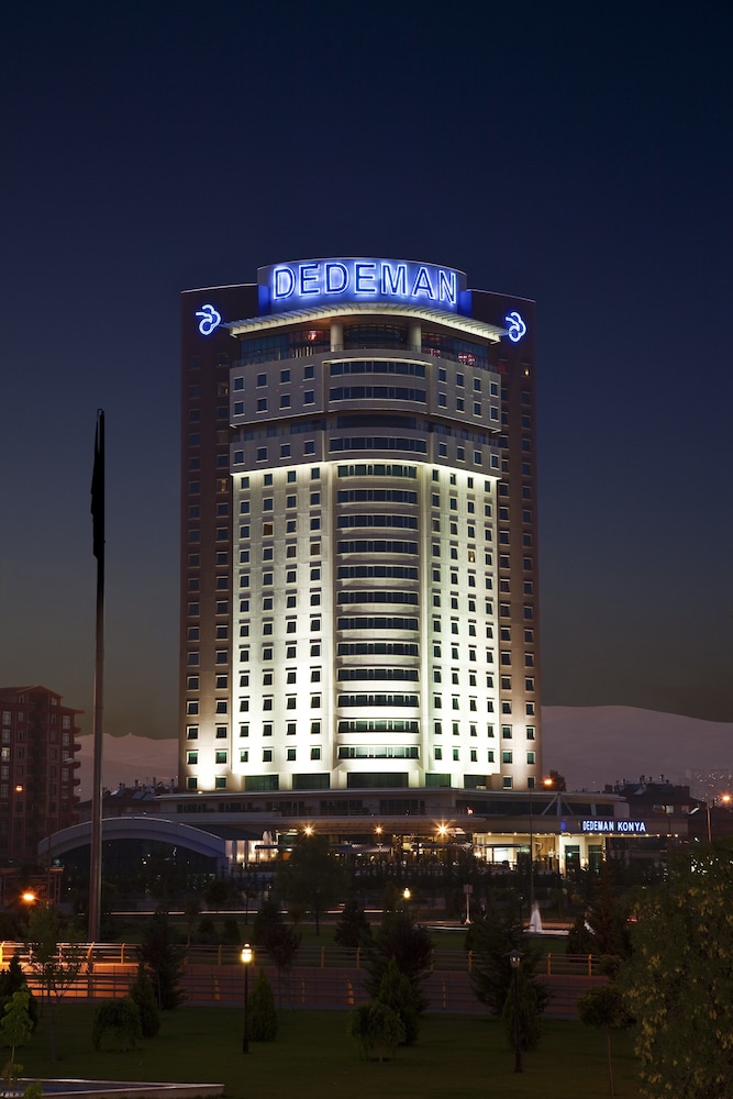 The Dedeman Konya Hotel & Convention Center is a Tourist hotel. Located in Konya area. The nightlife/restaurants are easily accessible by taxi or bus from the hotel. Located in the city center of Konya, Dedeman Konya Hotel & Convention Center offers convenient access to business and cultural districts. The hotel features 206 air-conditioned rooms with complimentary wired and wireless internet, flat-screen TVs, minibars, and private bathrooms. Guests can enjoy Turkish and international cuisine at the Safran Restaurant, or panoramic city views from the Roof Restaurant and Bar. The hotel offers multiple swimming pools, a fitness center, spa with massage treatments, steam room, hot tub, and Turkish bath. Additional amenities include a business center, meeting facilities, concierge services, gift shops, and complimentary parking. The hotel provides convenient transportation services, laundry, dry cleaning, and 24-hour room service. Buffet breakfast is available for a fee. The Ince Minare Museum is approximately 2.5 km away, and the Mevlana Museum is 4 km away.Hotel Location